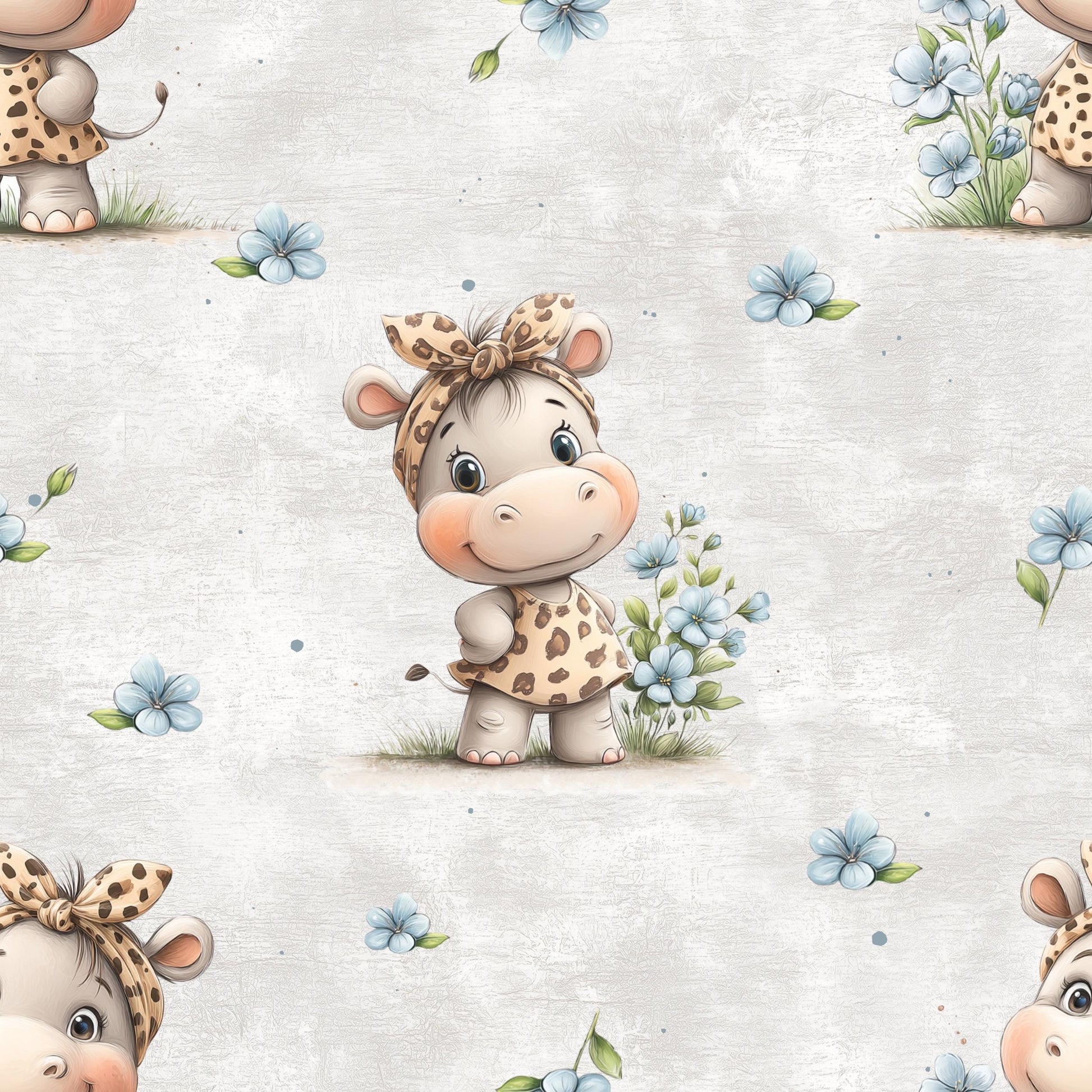 Eigenproduktion Stoff Nilpferd - Hippo