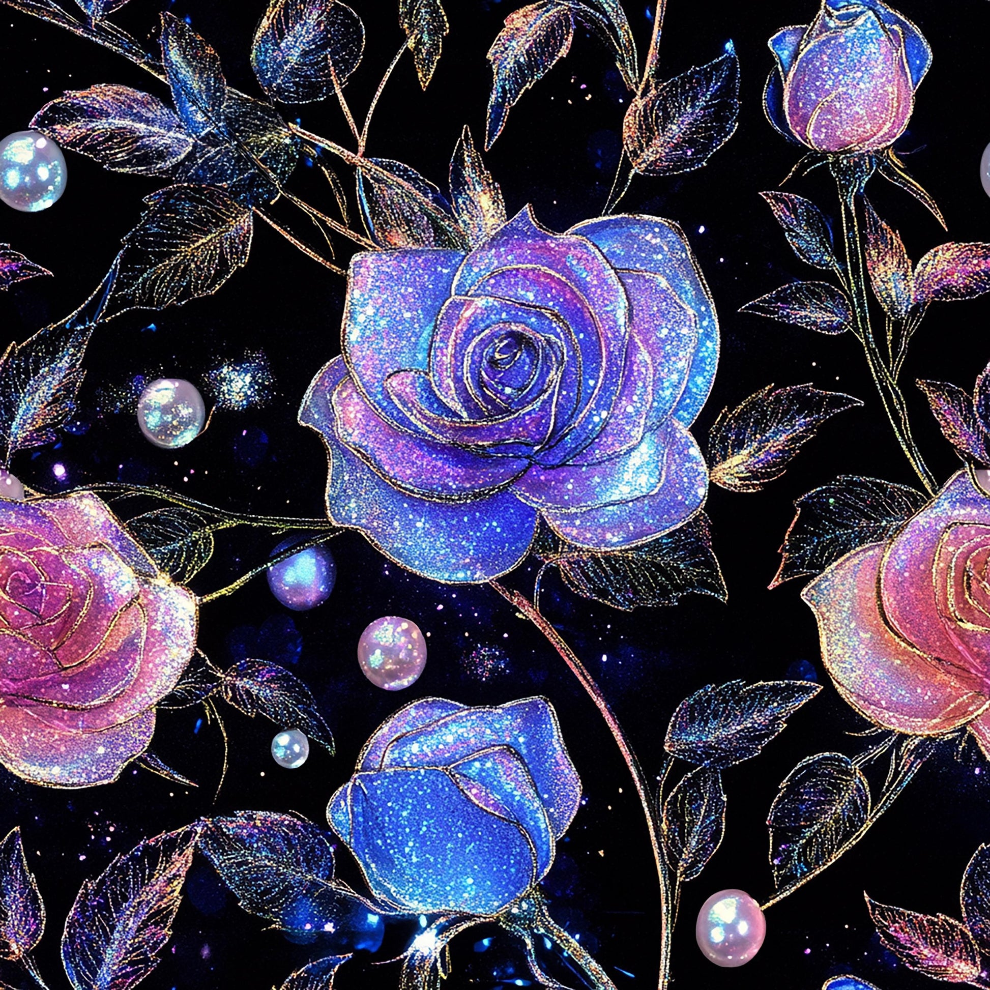 Eigenproduktion Stoff Rosen Glitzer
